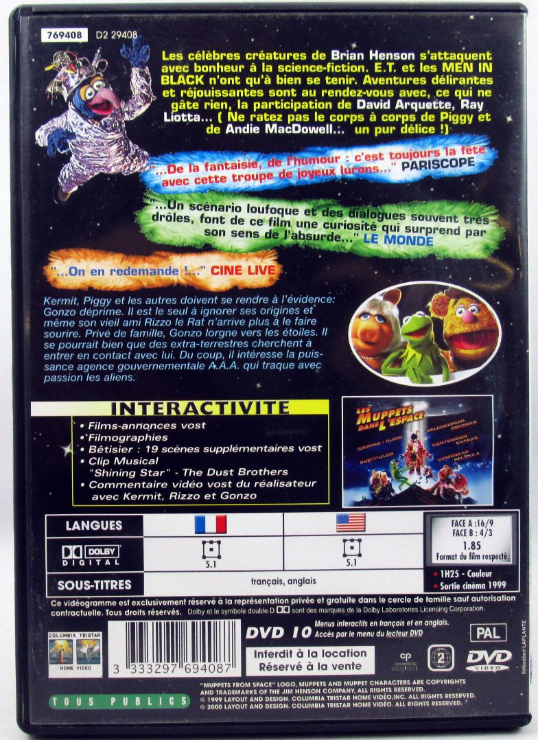 Le lot comprend les deux coffrets DVD "The Muppet Show" (soit 52 épisodes sur 10 disques), plus le film Les Muppets dans l'Espace.
