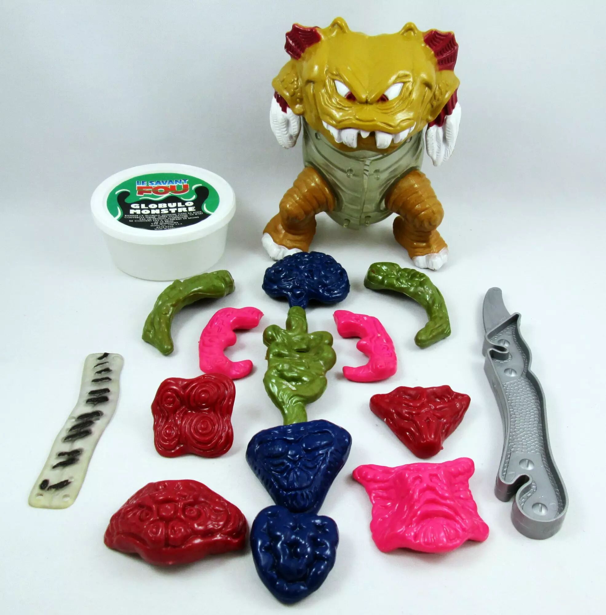 Condition : Occasion complet en boite :  Figurine avec 12 organes, un pot de pâte "Golbulo-Monstre" vide, couteau de dissection, pansement, tapis de jeu et boite (manque le rabat du haut) - voir photos pour détails.