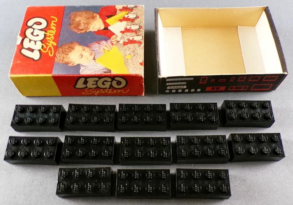 LEGO Ref.218 - Boite Tiroir de Briques Noires 2x4 Plots