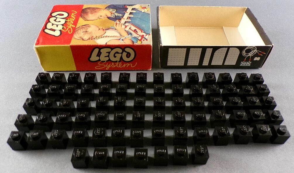 LEGO Ref.222 - Boite Tiroir de Briques Noires 1x1 Plot