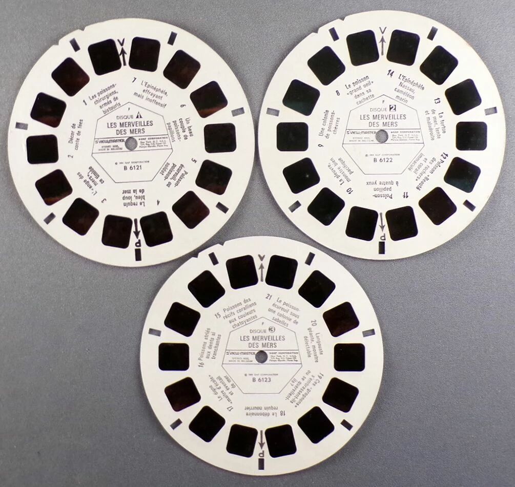 Accueil > View-Master (Disques et Visionneuse) > Les Merveilles des Mers - 3 Disques View-Master 3D sans Pochette Réf. B 612-F