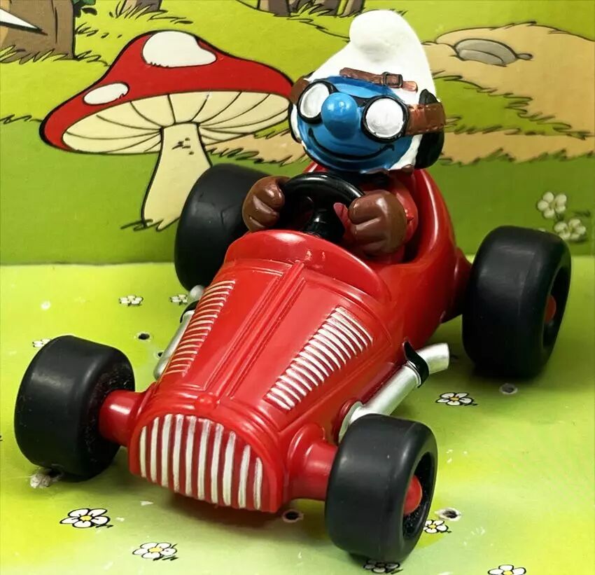 Les Schtroumpfs - Schleich - 40255 Schtroumpf avec voiture de course (rouge foncé)