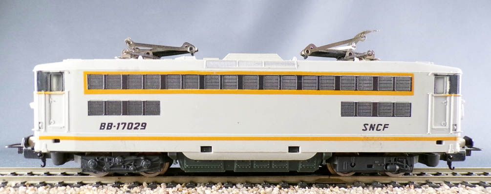 Lima Models 208103 Ho Sncf Locomotive électrique BB série 17000 immat 17023 livrée béton. Analogique 12V CC Moteur et transmission par engrenages, essieux métalliques, pantos métalliques, attelages boucles universelles, longueur 165 mm. Epoque IV