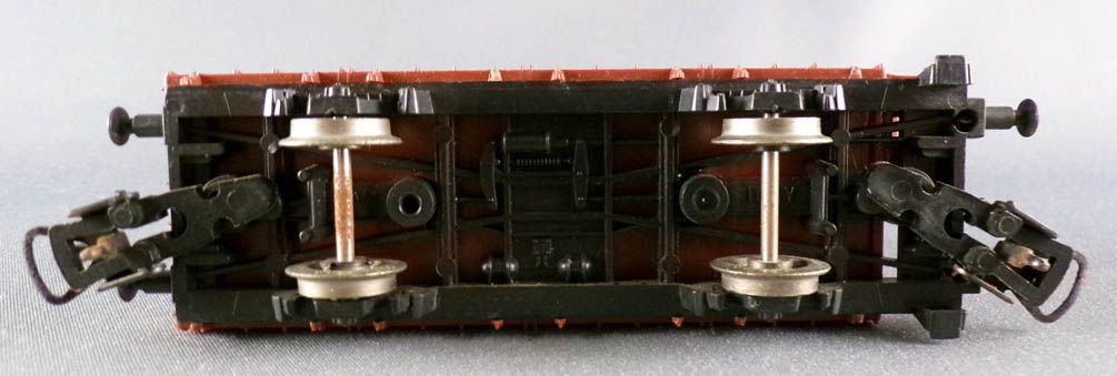 Lima 2818 Ho Fs wagon plat 2 essieux à guérite avec 3 Fûts Anker-Bier, immat P660 513 livrée brun. Longueur 117 mm, roues métal, attelages universels, tampons et marchepieds ok. Très bon état sans boite.