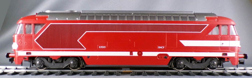 Lima 6575 0 Gauge Sncf Diesel Locomtive BB 67001 red livery. Length 375 mm. Very good condition, tested, run well, hasn't been on the rails for a long time, a little break-in will do it good, complete, buffers ok,without box.