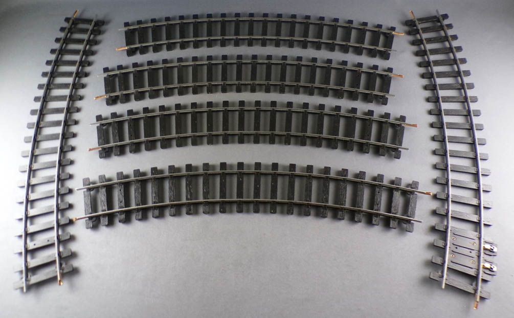 Lima 6811 Ech O 6 rails courbes acier dont un d'alimentation R=700 30°. Très bel état sans boite.