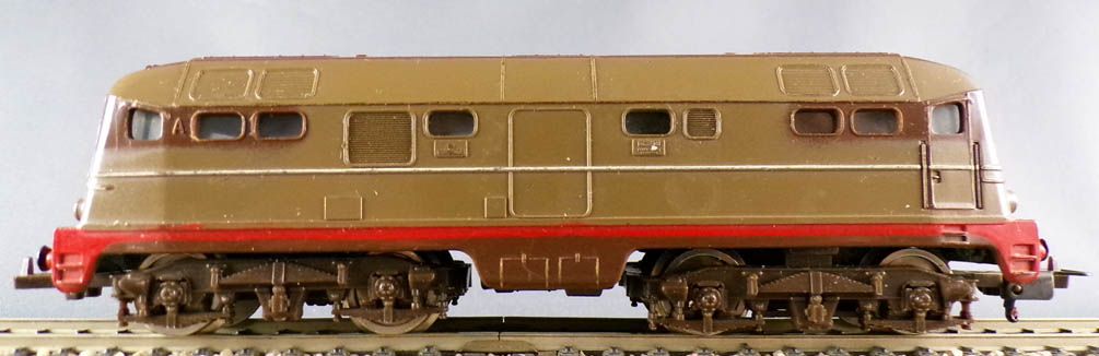 Lima 8023 Ho Fs D 342 diesel locomotive, tan livery with red stripe, dedicated to secondary line traffic, both passenger and freight. Coupling on one side, no coupling on the other, one motor bogie, two tyred axles. Length 165 mm. Very good condition, missing a buffer and the chassis/body fixing screw, the screw hole is missing and there is therefore a hole in the roof where it should be, tested, works, no original lighting, no box.