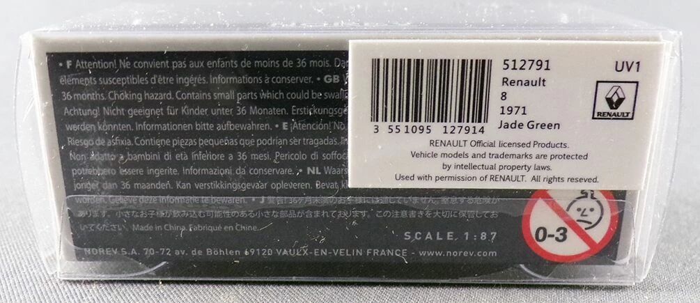 Norev Micro Miniature 512791 Ho 1/87 Renault 8 1971 Vert Jade Neuf Boite