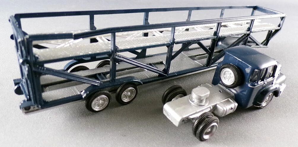 Norev Micro Miniature 550006 Ho 1/87 Camion Unic Remorque Transport d'Automobiles. Très bon état, rambarde cassée coté droit à l'arrière du pont supérieur, en boite
