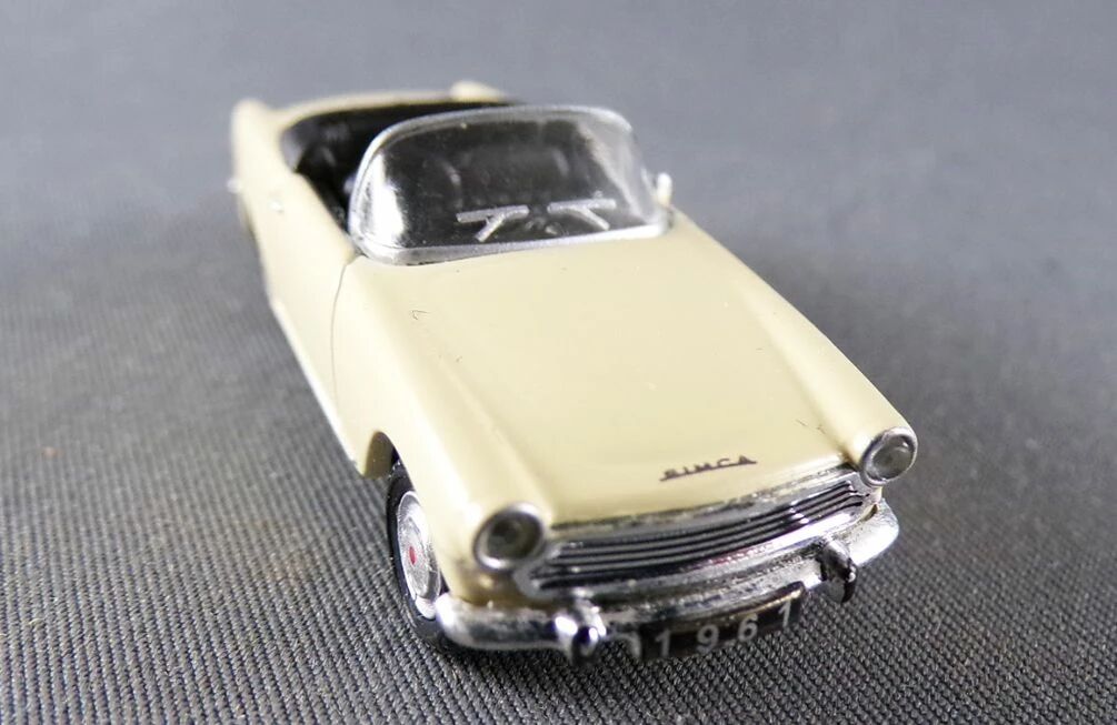 Norev Universal Hobbies for Atlas Ho 1/87 1961 yellow Simca Oceane. Finely detailed, rolling (the wheels turns), with interior fittings. Mint no box.