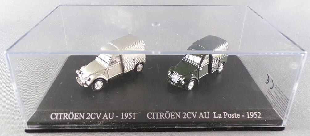 Norev Universal Hobbies pour Atlas Ho 1/87 Citroën 2CV AU grise - 1951 + Citroën 2CV AU verte La Poste - 1952. Neuf en boite