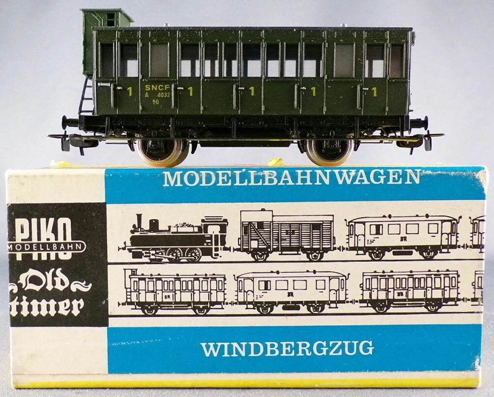 Piko 516 070 Ho Sncf 1st class coach with brakesman's cab road number A 4032 , green livery with grey roof, universal couplers, metal wheels. Era II. Length 110mm. Mint condition in original box, unused, complete, buffers & running boards ok.