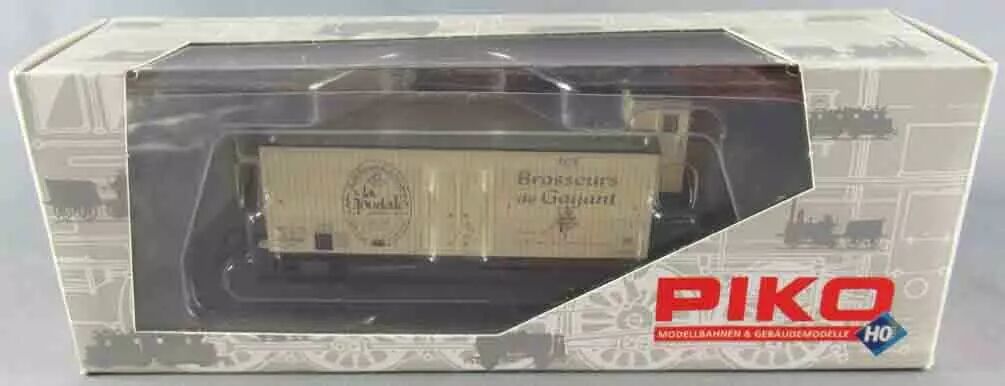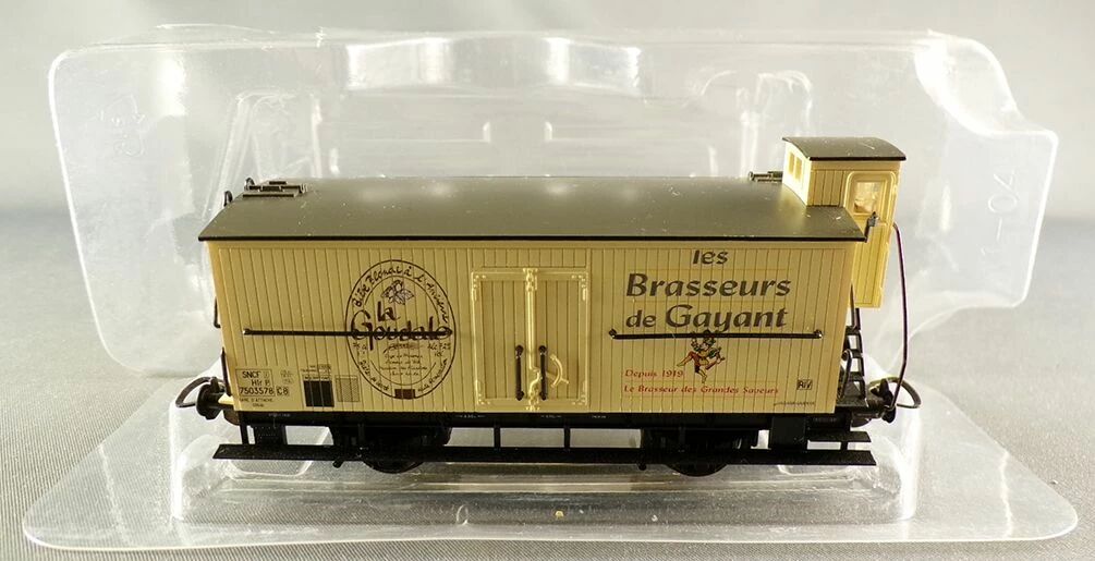 Piko 72037 Ho Sncf Bier Wagon 2 Axles Brakeman's cab La Goudale Les Brasseurs de Gayant Hif registration number 7503578 white livery. Ep III. Length 105 mm, burnished metal wheels, Nem universal couplers. Very good condition in original box, detailling parts well aded. Exclusive modele #15 for the magazine Le Train