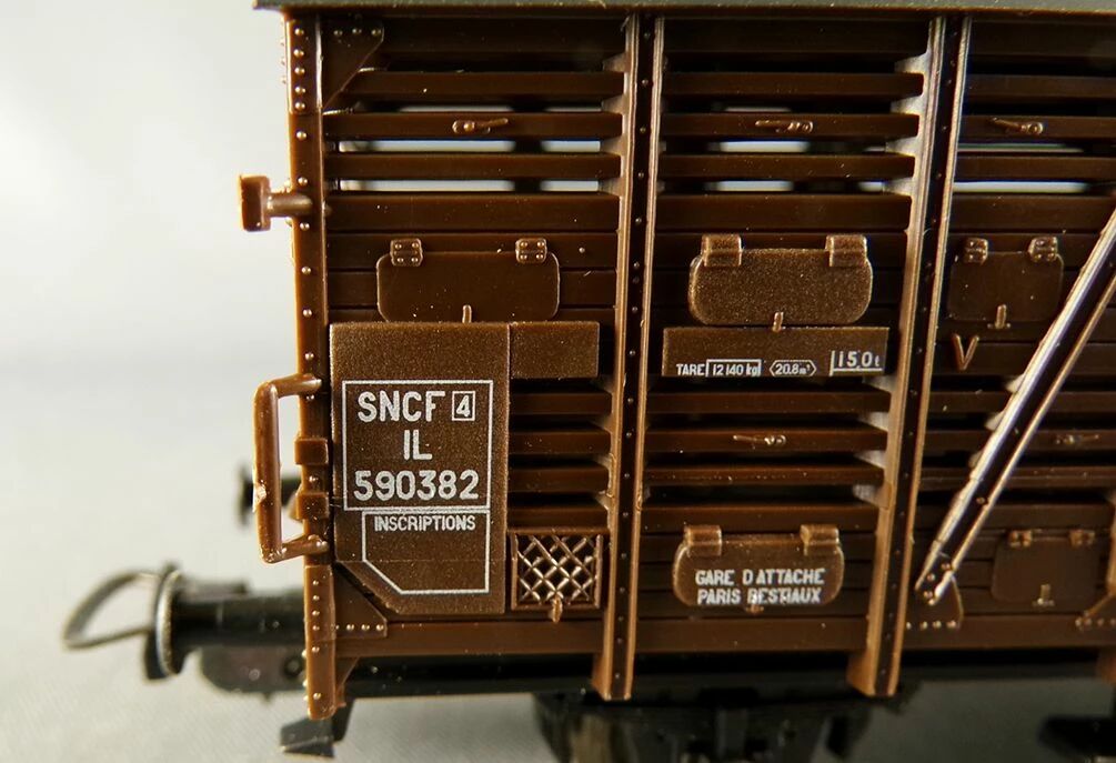 Piko 95073 Ho Sncf Cattle Wagon IL registration number 590382 brown livery. Ep III. Length 105 mm, burnished metal wheels, Nem universal couplers. Very good condition in original box. Exclusive modele #7 for the magazine Le Train