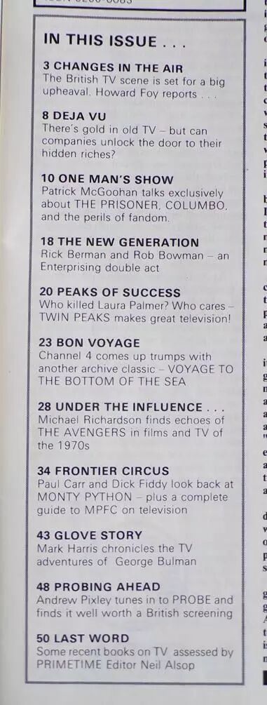 Primetime TV Magazine N°16 Hiver 1990/91 - The Avengers Bulman Star Treck Next G Twin Peaks Voyage to the Bottom of the Sea
