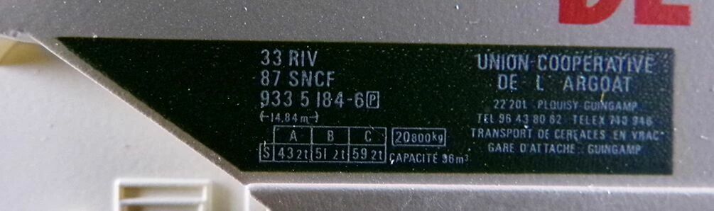 Rivarossi 2156 Ho Sncf Wagon Trémie Uas Argoat immat 33 87 933 5 184-6 livrée blanc. Longueur 170 mm, roues métal attelages Nem. Neuf en boite avec notice, jamais roulé, détaillage sur grappe.