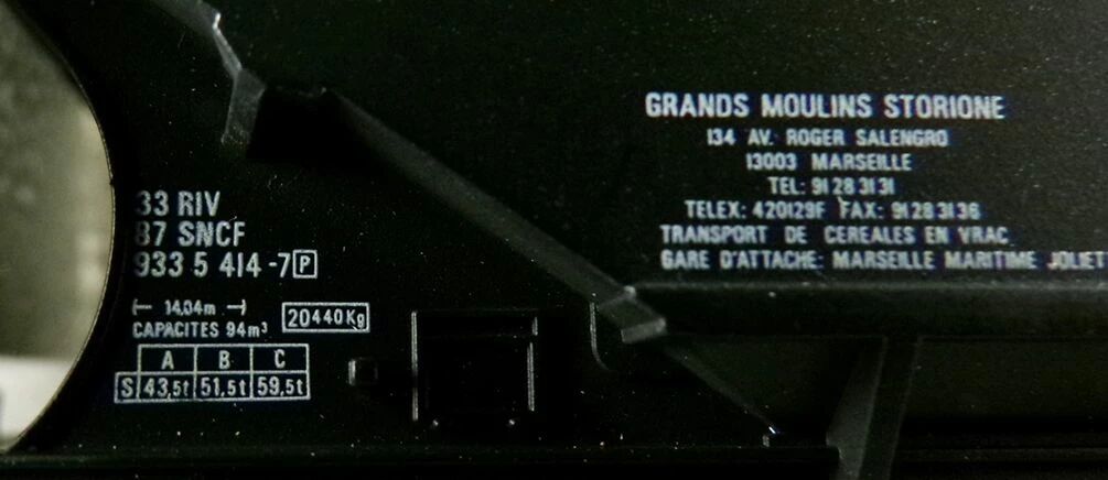 Rivarossi exclusivité pour Clarel 5667 Ho Sncf Wagon Trémie Uas Storione immat 33 87 933 5 414-7 livrée Noir. Longueur 170 mm, roues métal attelages Nem. Neuf en boite avec notice, jamais roulé, détaillage sur grappe.
