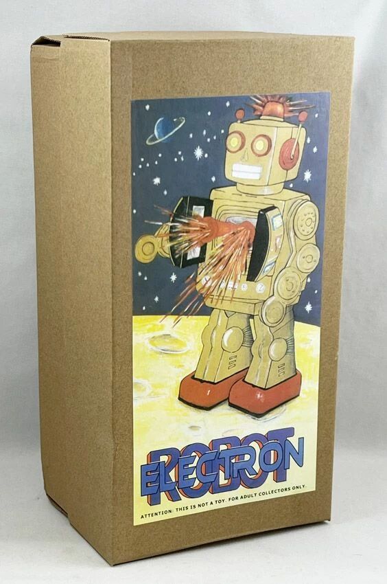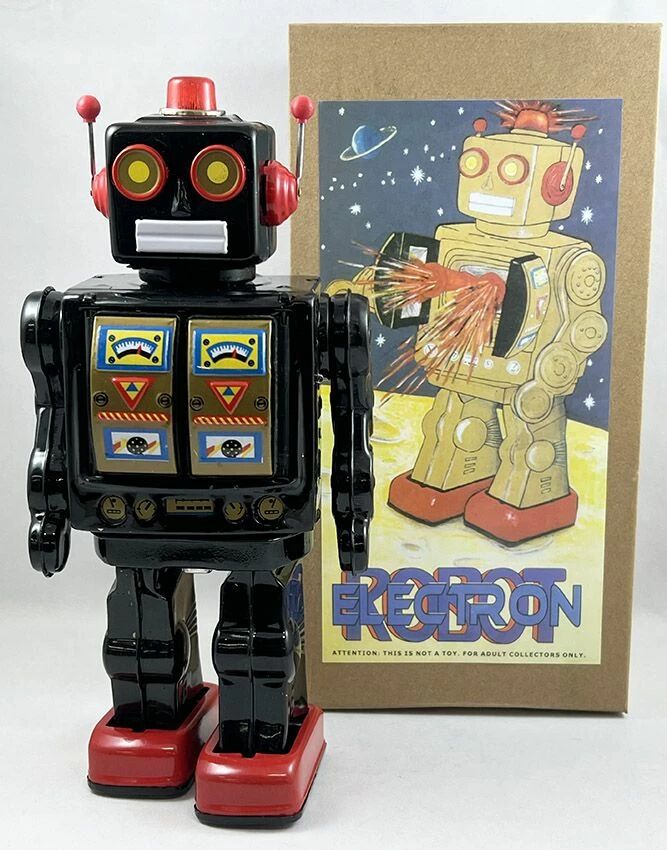 Accueil > Robots, Space Toys & Space Guns > Robots (En Tôle, Mécaniques, à Piles, ...) > Robot - Robot Marcheur à Pile en Tôle - Electron Robot (noir) ME101