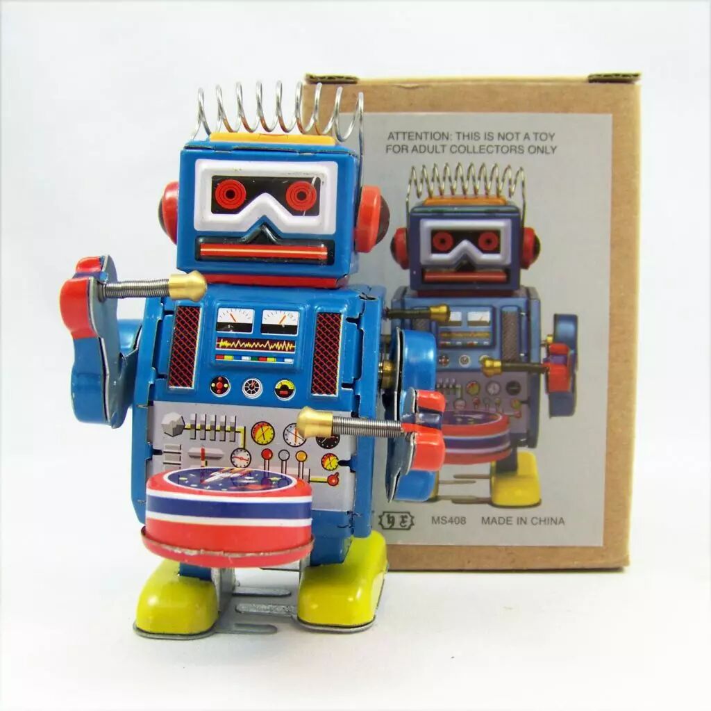 Accueil > Robots, Space Toys & Space Guns > Robots (En Tôle, Mécaniques, à Piles, ...) > Robot - Robot Marcheur Mécanique en Tôle - Robot Tambour (N.R.) MS408