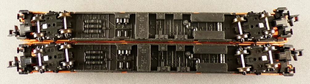 Avec aménagement intérieur détaillé, livrée orange toit gris. Longueur 162 mm. Neuve en boite d'origine, roues métal bruni, attelages Roco, complète, tampons ok, detaillage sur grappe sous sachet, boites en bel état.