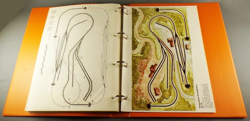 Roco Ho X.45 Technical binder nomenclature of tracks, installation, wiring and others (see photo of the summary) 39 color pages + 17 fold-out network plans with fold-out overlays, french language. Binder for A4 format. Very good condition.