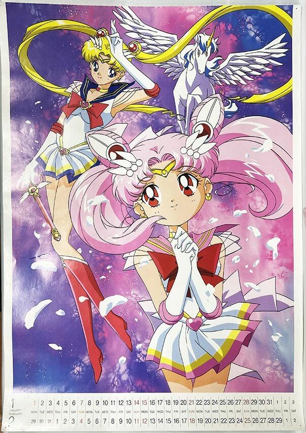 Type : lot de 7 posters provenant du calendrier de Toei Animation : Sailor Moon de 1995. Les feuillets sont tous détachées avec traces d'usure et de trou de punaises