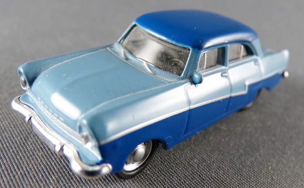 Schuco Ho 1/87 Ford Taunus 17M Bicolore deux tons de bleu. Finement détaillée, les roues tournent, avec aménagement intérieur. Neuf sans boite