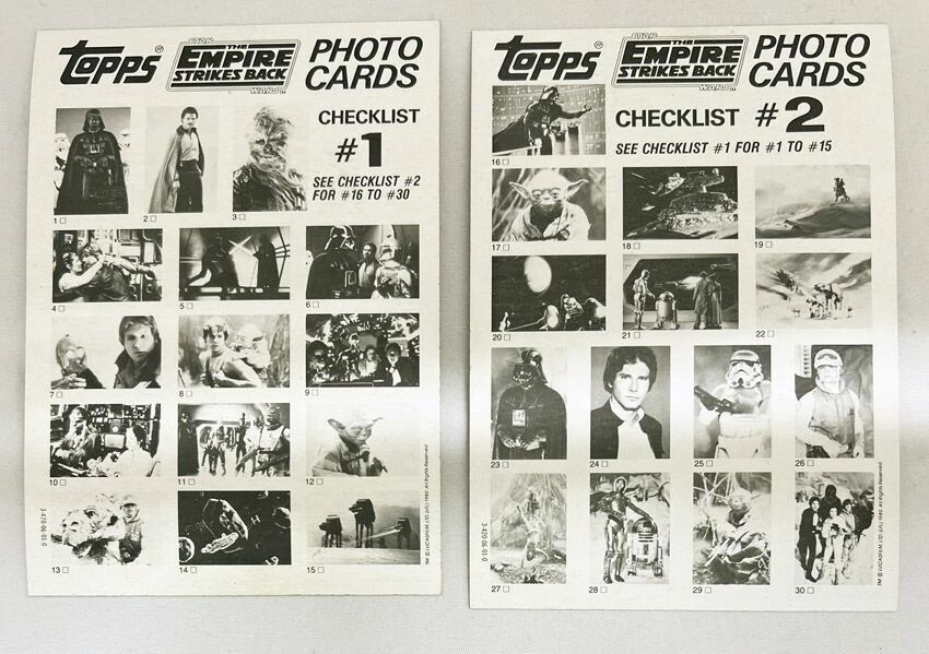 Accueil > Star Wars Vintage - 1977 à 1994 > Star Wars Vintage Merchandising > Star Wars ESB 1980 - 15 Topps Photo Cards #1 & #2
