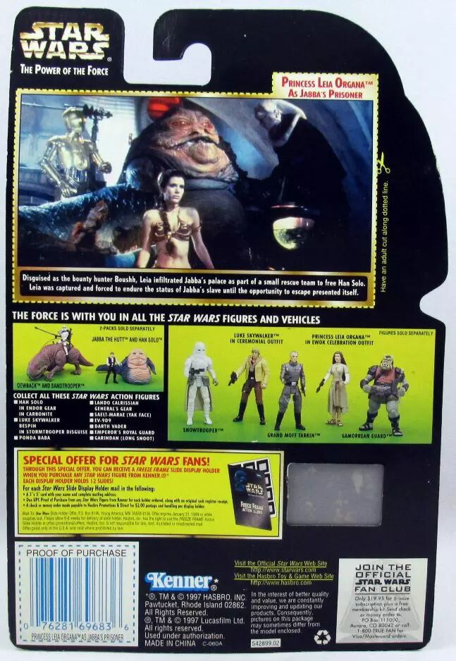 Home > Star Wars Modern (1995 & +) > 1995/1999 - The Power of the Force > 1997/1998 - Star Wars POTF2 Freeze Frame Figures > Star Wars (The Power of the Force) - Kenner - Princess Leia Organa as Jabba's Prisoner