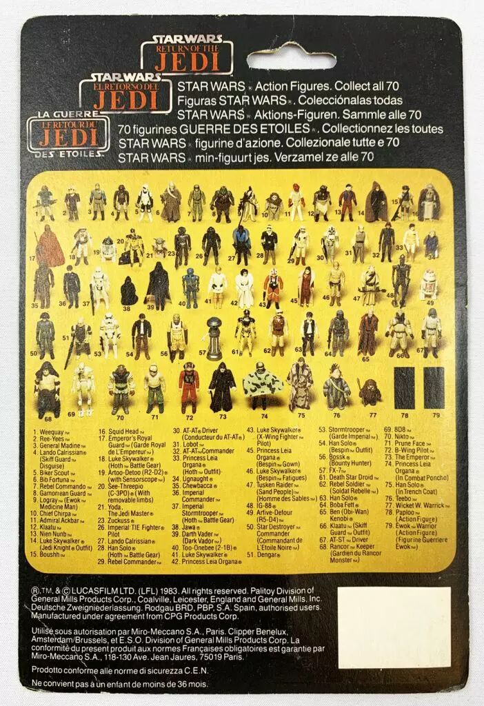 Accueil > Star Wars Vintage - 1977 à 1994 > Star Wars Vintage Cartes Seules (Card Backs) > Star Wars Trilogo 1983/1985 - Kenner - Prune Face (Card Back)