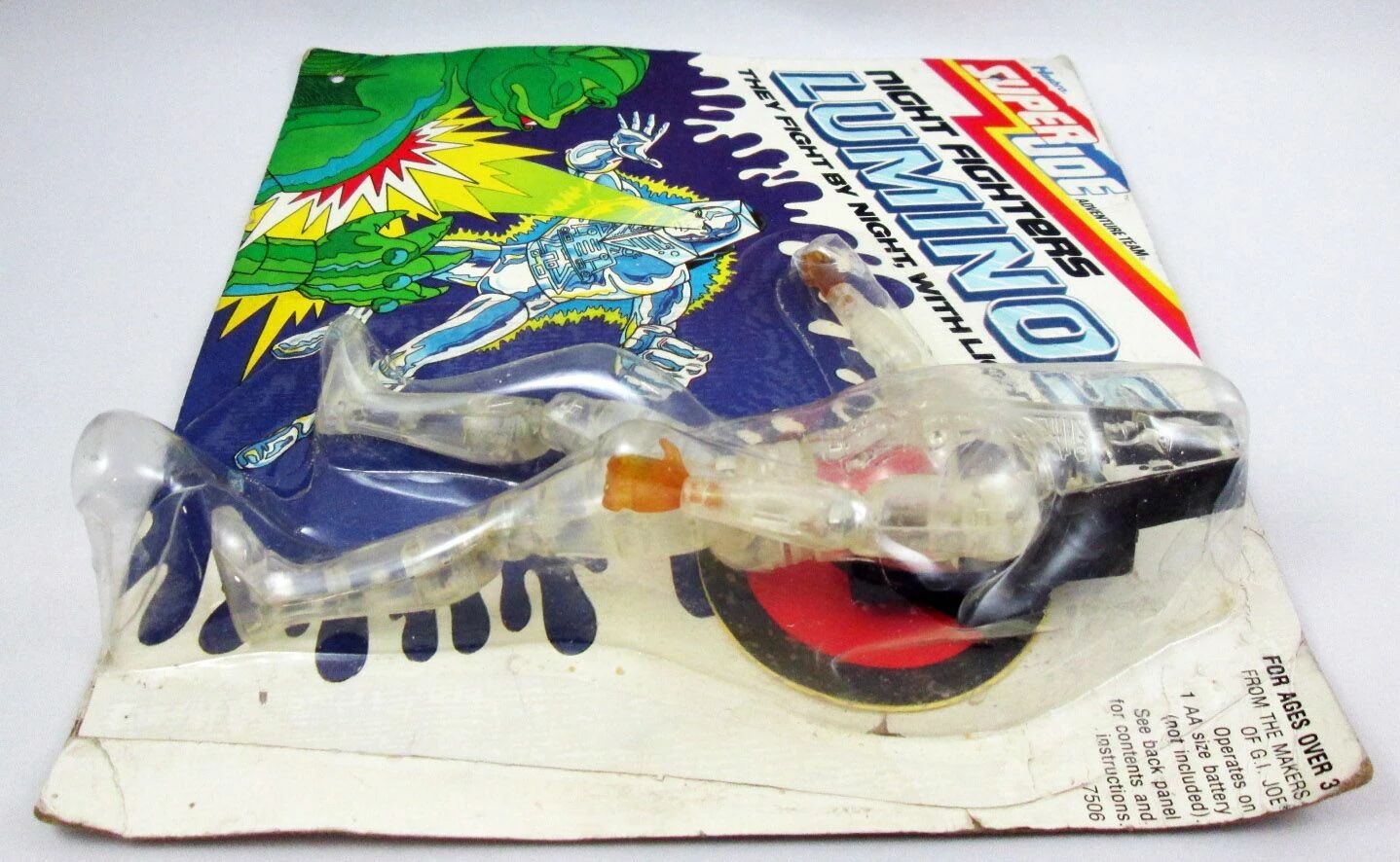The blister pack was opened (and then neatly resealed) in order to restore the figure's joints and hands, thus returning it to its original playability. The battery-operated light system has been tested and is working. Apart from the hands, which are obviously reproductions, all other parts are 100% original and brand new.