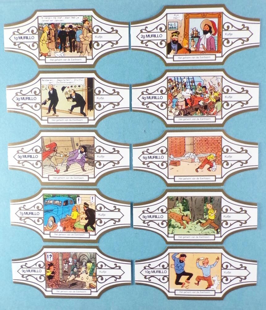 Tintin - Bague à (de) Cigare Murillo - Le Secret de la Licorne Série g Complète 10 Pièces (Blanc/Or)