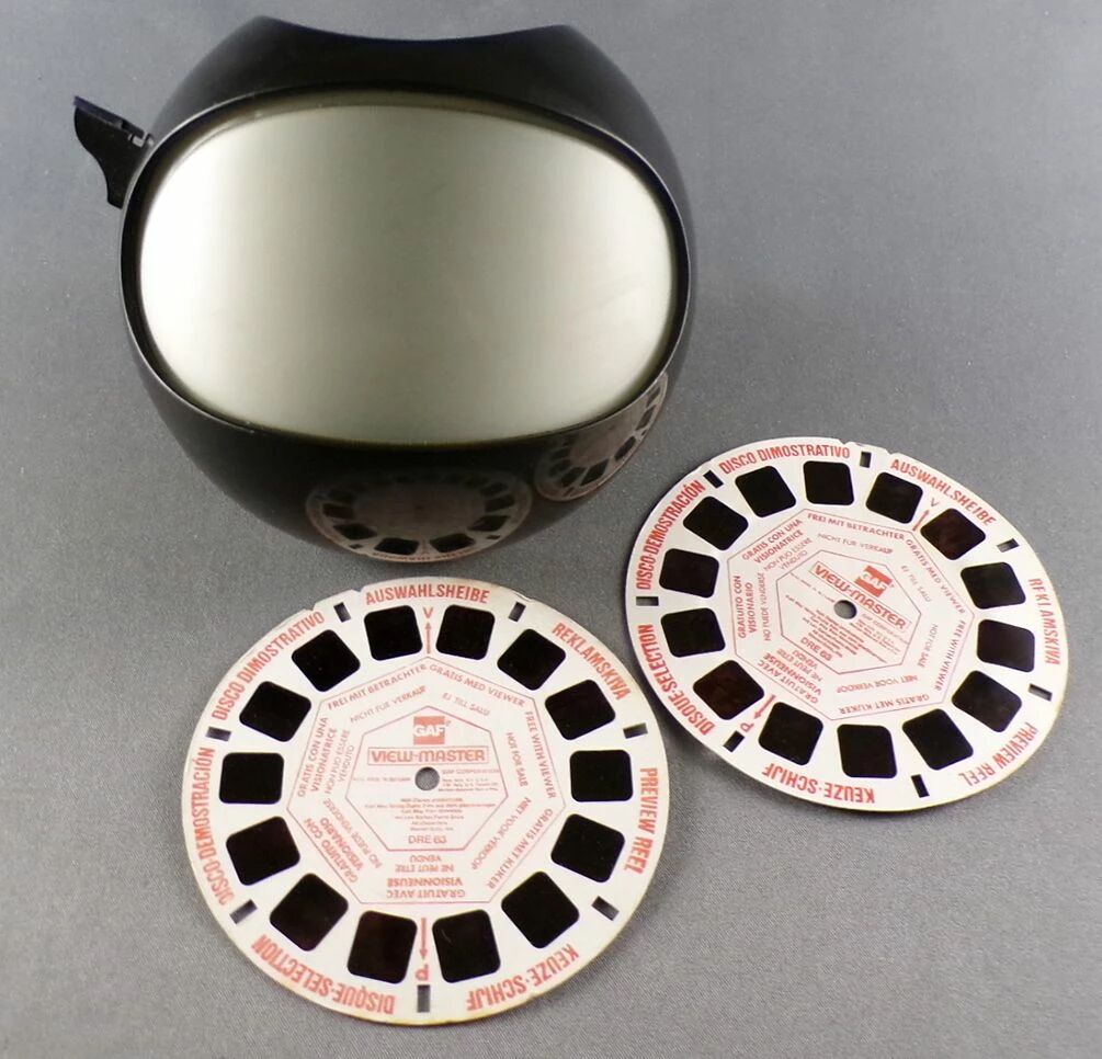 Accueil > View-Master (Disques et Visionneuse) > View-Master 3-D (GAF) - Visionneuse Ronde Marron + 2 Disques Sélection