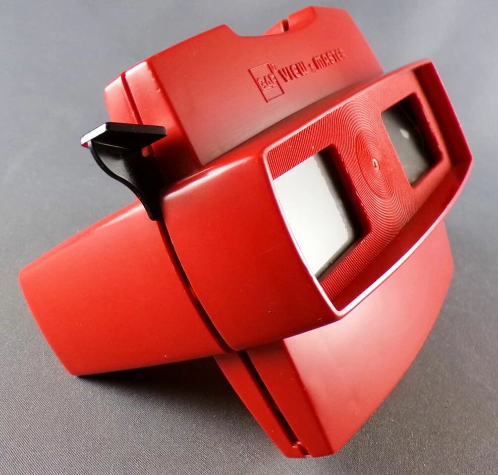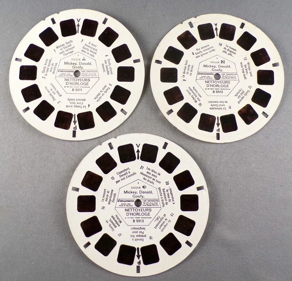 View-Master 3-D (GAF) - Visionneuse Rouge + 3 Disques Mickey Donald Goofy Nettoyeurs d'Horloge